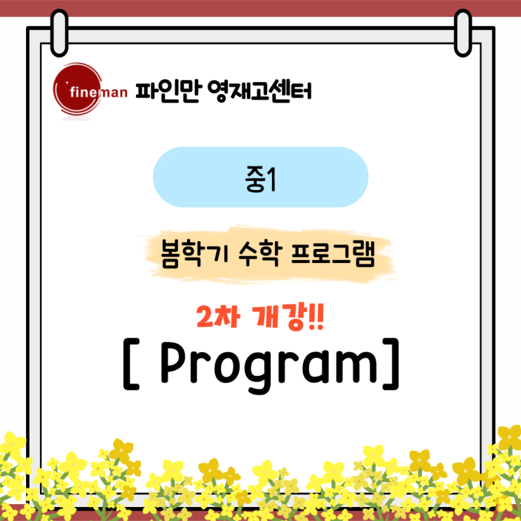 [중1] 봄학기 수학 프로그램(2026)_2차개강!!