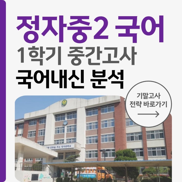정자중 2학년 1학기 중간고사가 잘 마무리되었습니다. 시험이 끝났다고 해서 끝이 아니라 지금부터가 성적을 바꾸는 시작점입니다. 정자중 국어 중간고사의 출제 경향, 난이도, 실제 등급이 갈린 포인트를 참국어입시학원 중등부가 정확하게 분석해 드립니다. “왜 맞고, 왜 틀렸는지”를 정확히 분석하는게 다음 시험 성적을 결정합니다. 2026년 2학년1학기 정자중 국어 내신 분석 (천재정 1,2단원 / 난이도 중★★★☆☆) 각 시의 화자에 대해 반복적으로 비교하였으며, 외부 지분(엄마 걱정)의 상세한 내용 파악에 중점을 두어 학습 지도하였습니다. 그림을 활용하여 시점 이해를 도왔으며, 제작한 어휘 프린트물로 어휘 의미를 암기하였습니....... <img src="https://blogthumb.pstatic.net/MjAyNjA0MjNfMjc0/MDAxNzc2OTM2MjAyNDI3.nPOguPIv_-yyGyyFQnIw4ruRiQnDzabjw8KYKgjRUncg.Qn4CFQwiAb4SLLSHP_NiBdhLZOzveyu7taTv3oJLR4sg.JPEG/1.jpg?type=s3" />
