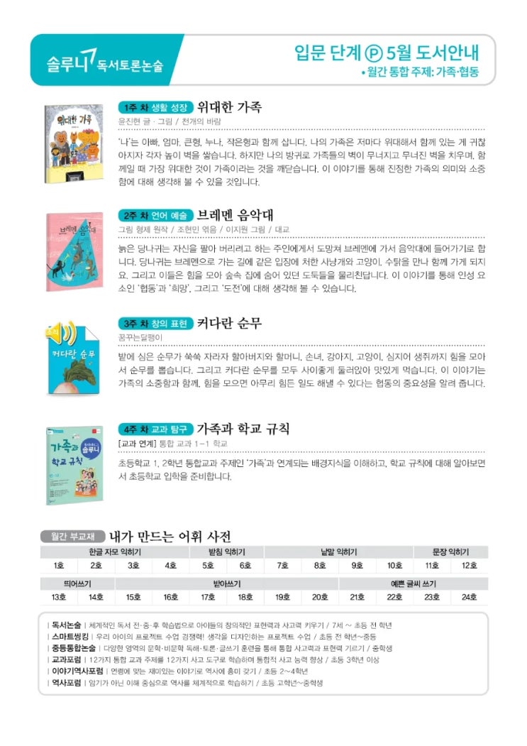 솔루니 5월 독서논술 유치원~초등 6학년