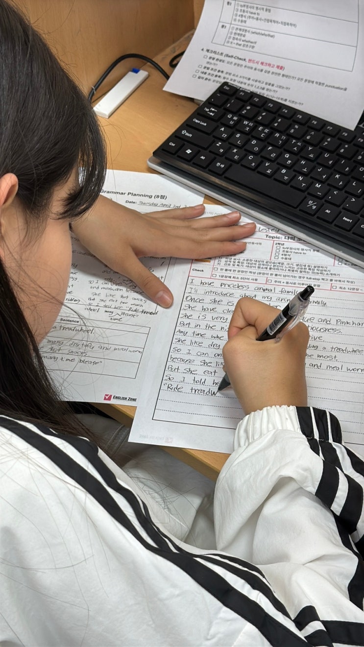 100점보다 무서운 것, '성취해 본' 아이의 눈빛입니다. 공부하는 학원에서 웬 환호성? 잉글리쉬존의 아이들이 '성공의 맛'을 봤기 때문입니다. 내가 쏟은 노력이 인정받고, 박수갈채의 주인공이 되는 경험은 아이의 인생을 바꾸는 미래의 자신감이 됩니다. 아이들의 눈빛이 바뀌는 0.1초의 현장을 공개합니다! 어떤 대회의 시상식이었나요? 수상을 축하합니다! Writing의 노력이 점수로 증명되는 순간 잉존에게 성적은 목표가 아닙니다. 매일 하브루타와 프로젝트로 사고력을 기르고 writing / speaking으로 표현해온 아이들에게 수행평가 만점은 과정이 만든 자연스러운 결과입니다. 잉글리쉬존이....... <img src="https://blogthumb.pstatic.net/MjAyNjA0MThfMTk4/MDAxNzc2NDQ3MzAxMzQ2.DGpJIs2v6DWijw1hTzNAzl21f2ARUPgh72sgdtnaLqgg.SiY04MIPZ1GA1tLaKelxq4jZnmFrQI9f8RuMXgZRggYg.JPEG/IMG%A3%DF2118.JPG?type=s3" />