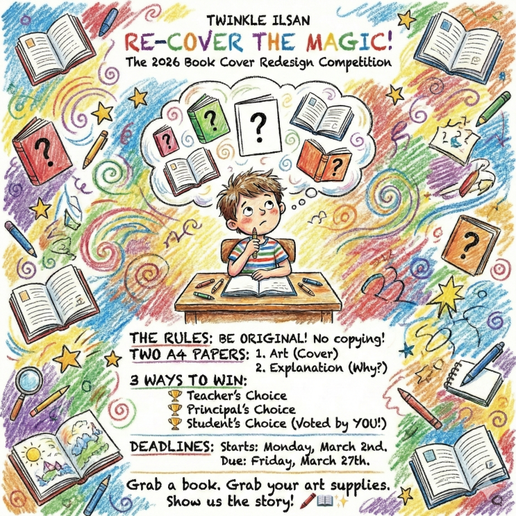 안녕하세요, 트윈클어학원입니다! 지난 3월 한달동안, 트윈클 일산에서는 아이들의 창의력과 표현력을 키우기 위한 Book Cover Redesign Contest 를 진행했습니다. 기존의 소설책 표지를 그대로 따라 그리는 것이 아니라, 아이들만의 시선과 감각으로 책을 재해석하여 새로운 표지를 만들어보는 활동이었습니다. 생각보다 훨씬 많은 학생들이 참여해주었고, 각자의 개성이 담긴 작품들이 하나하나 정말 인상적이었습니다✨ 같은 책을 바탕으로 했음에도 불구하고 표현 방식, 색감, 구성 모두 다 달라 아이들의 창의력이 얼마나 다양한지 느낄 수 있는 시간이었습니다. 이번 컨테스트는 단순한 평가가 아닌, 다양한 기준으로 수상작이 선정되었습....... <img src="https://blogthumb.pstatic.net/MjAyNjA0MjNfMjEg/MDAxNzc2OTIzMDc5MTQ4.gPbON_wwUzR7T__PxpEX1pomOoKNvdh5ONECAXoHboog.9Vvm3K4jL40XFjcQPJ2BfQBwqUuG6ycDBvNnkL5VSaUg.PNG/KakaoTalk_20260423_144050453.png?type=s3" />