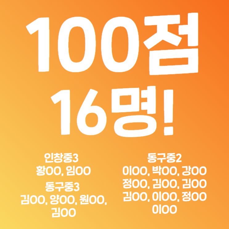 인창중, 동구중 영어 100점 16명 압도적 성과의 이유