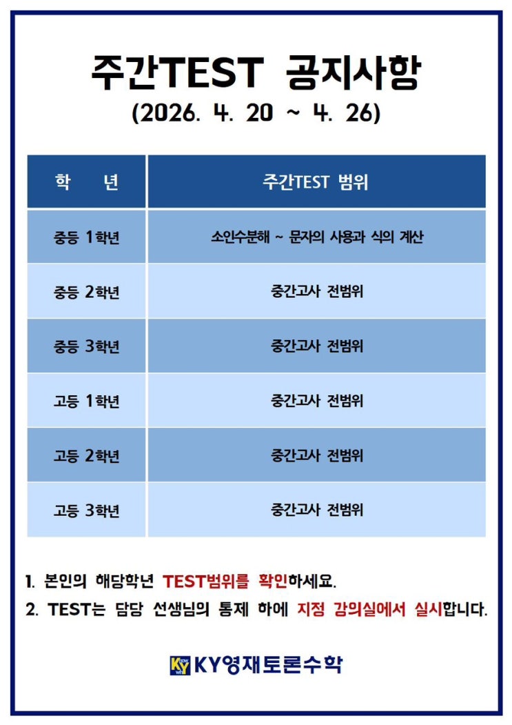 2026년 4월 4주차 주간테스트 공지사항