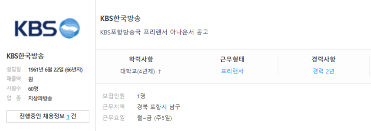 [공채] KBS포항방송국 프리랜서 아나운서 공고