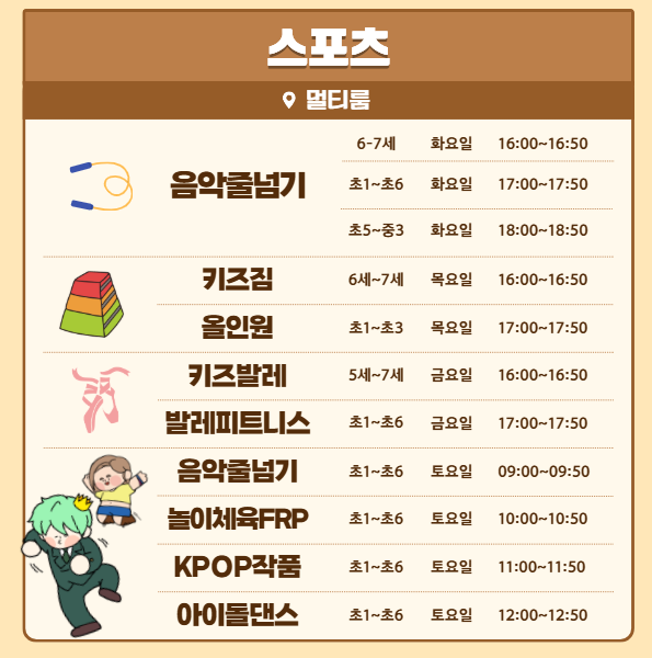 [26.05] 과천 위버필드 커뮤니티✨ CLASS 운영과목/수강연령 소개