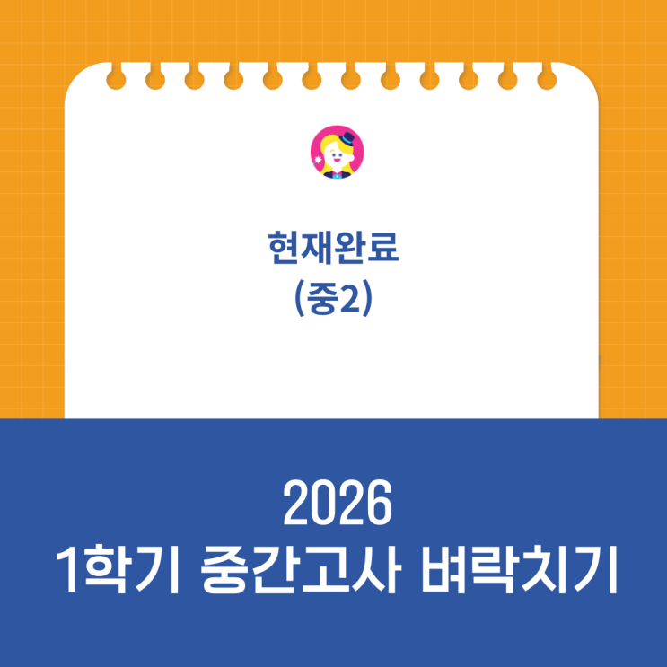 현대중2 YMB김 2과 현재완료 벼락치기합니다~ 학생들이 영어? 그럭저럭 쉽네~하다가, 어렵다고 느끼기 시작하는 순간이 바로 현재완료!! 단원입니다. 이름부터가 헷갈립니다. 현재와 완료가 붙어 있으니까요. 우리말에서 완료는 과거 아닌가요, 이렇게 생각하게 됩니다. 현재완료에서 ‘완료’는 perfect present perfect tense perfect는 완벽한, 완료되어 더 고칠 것이 없는 상태, 그래서 현재완료는 현재 갖고있다.have 완료된 상태를. p.p 핵심 재료는 완료의 의미를 가진 형태, 과거분사 p.p 정리하면 have(has) + p.p 완료된 상태를 지금도 가지고 있다 이렇게 이해하면 훨씬 쉽습니다 어렵게 느껴지지만 사실 시험 포인트는 딱....... <img src="https://blogthumb.pstatic.net/MjAyNjA0MjNfMTY2/MDAxNzc2OTA4NTc1NTY2.kGtYeXf2gQO2N2-WtiF6rFvMUmpeeq8hdrOGlrE6Z2sg.7yA0pKJGzLtC_IwS7Og_VSafRJrNZvQ2z1Gd0y6IDA4g.PNG/2026_%C1%DF%B0%A3%B0%ED%BB%E7_%BA%AD%B6%F4%C4%A1%B1%E2_%283%29.png?type=s3" />