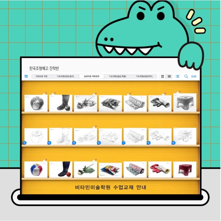 안녕하세요~~ 부산 유일!! 예고 진학만을 위한 미술학원 비타민입니다. 오늘은 조형 예고 진학을 위해서 비타민 미술 학원의 수업 교재 및 수업 준비에 관해 알려드리겠습니다. 매년 압도적인 입시 결과를 만들어 내는 이유의 원천은 철저한 준비와 학생지도에 대한 끊임없는 노력과 열정입니다. 비타민 미술 학원의 진학을 위한 열전!! 우리 함께 살펴 보기로 하겠습니다. 학생들을 지도하면 매년 느끼는 것 중 하나!! 이거 어떻게 그려요? 그림의 전개 과정을 잘 모르겠습니다! 등등 막연하게 사물 보고 그리는 경우가 많이 있습니다. 입시 그림은 우리가 보이는 사물의 단순한 표현을 넘어 다양한 조형적인 요소와 시각적인 요소를 그림 속에....... <img src="https://blogthumb.pstatic.net/MjAyNjA0MjlfMjA2/MDAxNzc3NDQ3ODE1ODk0.Vv2Ux2aC1g3KrDsDG7RQoKF-WawTiI7c_Q_Y5SdMVmYg.qei_wAL4PpiAT7Qe1RTmADiU-nAQGg8Bsgmnk_mWip4g.JPEG/001.jpg?type=s3" />