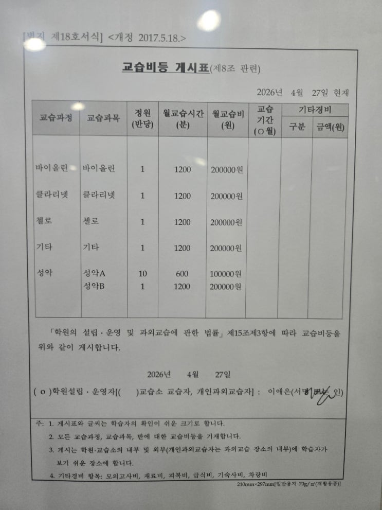 <교육비 안내>