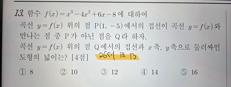 안녕하세요. 대치동 독학재수 & 수학학원 리미트제로입니다. [2026학년도 3월 모의고사 13번] 이번 26실시 3모 13번은 단순히 문제만 확인한다면 전형적인 미분 + 접선 문제로 인식되는 유형입니다. 그래서 풀이 과정은 자연스럽게 이렇게 흘러갑니다. 접선 방정식 설정 미분 계산 조건 대입 연립 과정 진행 최종값 계산 문제는 여기서 발생합니다. 이 과정은 단순히 “맞는 풀이”가 아니라 시험장에서 매우 무거운 풀이 구조입니다. 특히 중요한 건 이 부분입니다. “접선의 방정식을 반드시 세워야 한다”는 고정 관념 대부분 학생들이 이 생각에 갇혀 있습니다. [1] EBS 정석 풀이의 구조 먼저 EBS 정석 풀이를 살펴보겠습니다. EBS....... <img src="https://blogthumb.pstatic.net/MjAyNjA0MjBfODUg/MDAxNzc2Njg1OTgwMjU4.8C_exvinrpBL6E_Bdb-MEn4m9oKRfrw0kr0fyiWnFQgg.Ya2a_WMnRf_ma7PoEqLP-zRUm8IZO_8Uy8A7eA_3Vwgg.JPEG/1._26%BD%C7%BD%C3_%B0%ED3_3%BF%F9%B8%F0%C0%C7%B0%ED%BB%E7_13%B9%F8_-_%B9%AE%C7%D7%BB%E7%C1%F8.jpg?type=s3" />