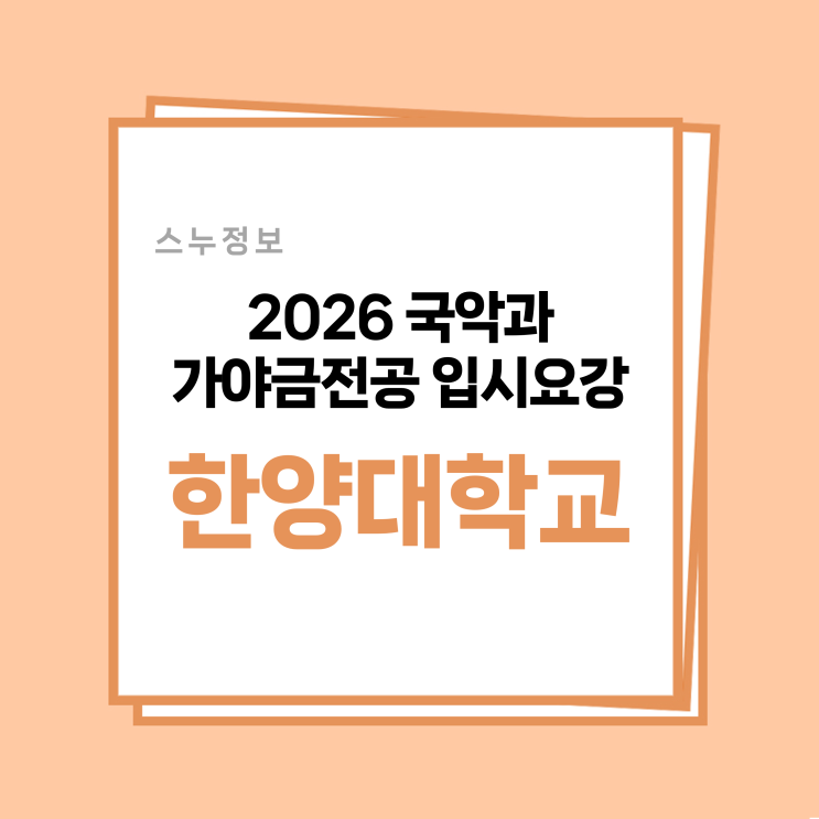 안녕하세요, 스누국악입니다! 오늘 소개해 드릴 2026학년도 가야금 전공 입시 요강의 주인공은 바로 '한양대학교'입니다. 한양대학교 가야금 전공은 한국 전통 음악의 실기와 이론을 균형 있게 배우며 정악, 산조, 창작 음악 등 다양한 레퍼토리를 폭넓게 익히는 과정으로 구성되어 있습니다. 개인별 전공 실기 수업과 앙상블, 정기 연주회 참여 등을 통해 섬세한 연주 역량과 음악적 표현력을 기를 수 있는데요. 이러한 체계적인 커리큘럼을 바탕으로 매년 많은 학생이 지원하고 있습니다. 2026학년도의 경우 4명 모집에 75명이 지원해 18.75 : 1의 경쟁률을 기록했으며, 앞선 2024년(17.20:1)과 2025년(21.00:1)에도 꾸준히 높은 경....... <img src="https://blogthumb.pstatic.net/MjAyNjA0MTBfMTY2/MDAxNzc1ODE4MjkxODI2.SsDIkdNu1ZRh4tLaKieJRQqx_7OecJ95aZiPWgP-pAYg.OQHfcnkMjzj80XAhIqKSJyZZaDjITrP5qH3dpr-VBMYg.PNG/%BD%BD%B6%F3%C0%CC%B5%E51.png?type=s3" />