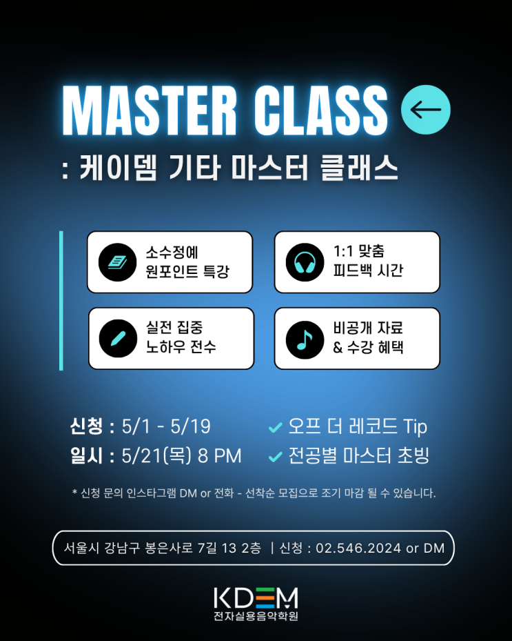 기타 마스터 클래스 신청 / 케이뎀 전자실용음악학원
