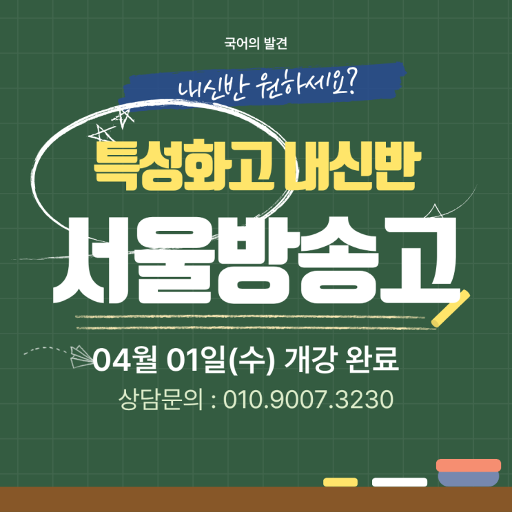 안녕하세요. 국어의 발견입니다. 오늘은 특성화고인 '서울방송고 내신반'을 개강하게 된 배경에 대해 말씀드리려 합니다. 어느 날 한 학생에게 연락이 왔습니다. 서울방송고에 다니는 학생이었는데, 내용은 단순하면서도 마음이 쓰이는 것이었습니다. "저희 학교 내신 대비해 주는 학원이 없어서요. 혹시 가능할까요?" 특성화고 학생들은 종종 이런 상황에 놓입니다. 시험은 있는데, 그 시험을 함께 준비해 줄 곳이 마땅치 않은 것이죠. 국어의 발견은 이 문의를 받고 곧바로 답했습니다. 출판사명과 시험 범위만 확인하면 바로 시작할 수 있다고요. 국어의 발견은 이전에도 여러 특성화고 학생들을 수업한 경험이 있습니다....... <img src="https://blogthumb.pstatic.net/MjAyNjA0MTRfMjM2/MDAxNzc2MTQxNTE1ODUz.GdxlWDYuIRL-25NZwiQxE3cDczyy7G8jejVfEHXqdmwg.40vIjMIUPl52CYwl0PDuCOWuPC_peLZbixmCp2ux5Tkg.PNG/1.png?type=s3" />