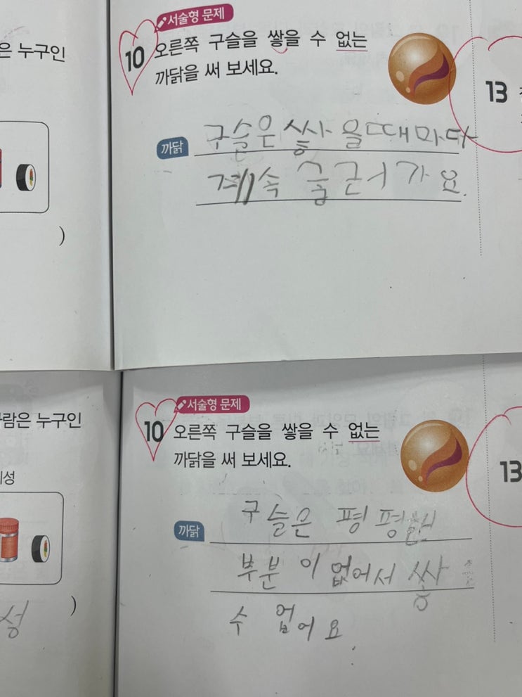 초등학교 1학년이 되어 처음 서술형 문제를 풀 때 “답은 알겠는데….. 근데 뭐라고 써야 할지 모르겠어요…” 아이들에게 정말 많이 듣는 말입니다. 그래서 먼저 내 생각을 말로 꺼내보고, 그걸 글로 옮기는 연습부터 차근차근 시작했어요. 초등학교 1학년 시기에 중요한 건 완벽한 답이 아니라 글쓰기 자체에 익숙해지는 경험이니까요. 그렇게 연습을 하다 보니 아직은 짧은 문장이지만 우리 아이들 나름대로 고민하고 쓴 흔적이 보여서 볼 때마다 괜히 한 번 더 보게 됩니다 얼마 전에는 이런 감동적인 손 편지도 써줬어요 ♥️ 짧은 글이지만, 아이 마음이 그대로 느껴져서 읽는 내내 참 마음이 따뜻해졌습니다. 그리고 쉬....... <img src="https://blogthumb.pstatic.net/MjAyNjA0MDFfMTI0/MDAxNzc1MDE4NTgyMjY5.OQPXnZLZNAGicQNNkeL_ZBmT6uLvGZsX5mMiDSt9wzUg.-aA3zrzNmevav5x5c3oXpRBEDseXx7AuyhoNE3Ck00Yg.JPEG/IMG%A3%DF1577.jpg?type=s3" />