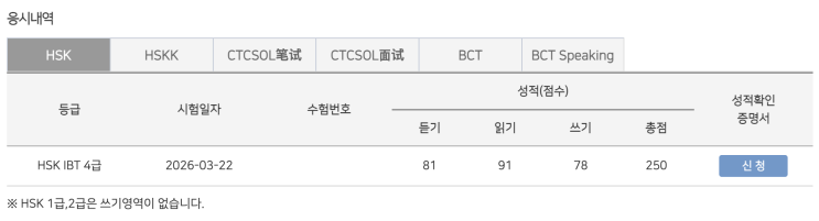 3월 22일 HSK 합격을 축합니다.