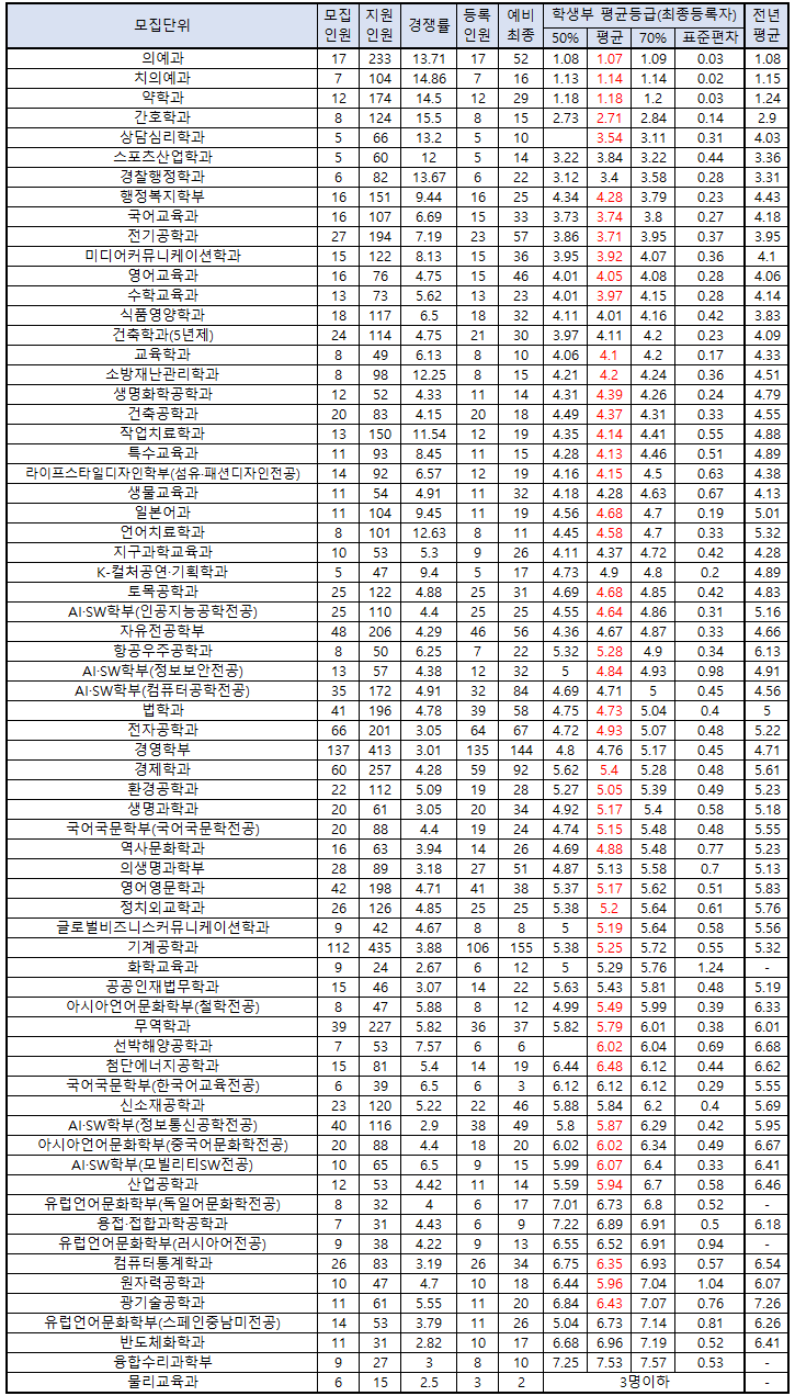 2026학년도 조선대학교 수시전형(교과.종합.지역) 입시 결과