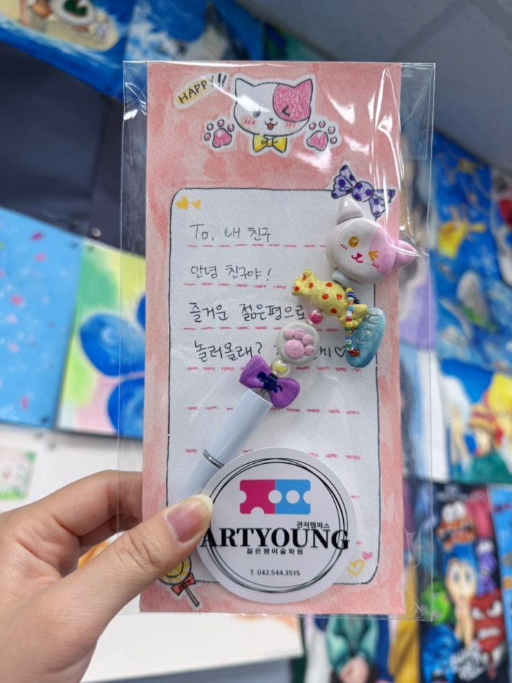 안녕하세요〰️ 젊은평미술학원 관저캠퍼스 초등반쌤입니다 ପ(。ᵔ ⩊ ᵔ。)ଓ 최근 한창 유행이던 볼꾸.ᐟ.ᐟ 다들 한번쯤 들어보셨죠? 아이들의 관심사를 파악하고 곧바로 샘플 만들기 시작!! 지점토로 조물조물~ 뚝딱 완성❣️ 이번 수업에서는 ‘디저트’를 주제로 볼펜 꾸미기 조형수업을 진행했어요❤️ 달콤한 케이크, 마카롱, 사탕 등 다양한 디저트를 떠올리며 아이들만의 아이디어를 먼저 구상해보고 지점토를 활용해 볼펜에 들어갈 작은 장식들을 직접 만들어보았습니다✨ 작은 크기 안에서 세밀한 형태를 잡는 과정이라 집중력과 섬세함이 특히 중요했는데요! 아이들 모두 각자의 개성과 취향을 살려 다채롭게 표현해주었답니다....... <img src="https://blogthumb.pstatic.net/MjAyNjA0MzBfMjE0/MDAxNzc3NTQ5NDkxNTc5.GgX2oGO5iVGnnoMlfmNxXzKaPFGD3JMoWyOCQIzeju8g.TPYmREYZ23tRREYWFw8bxOhRplQOHXcbxCZHiWAeRs8g.JPEG/IMG%A3%DF7749.jpg?type=s3" />