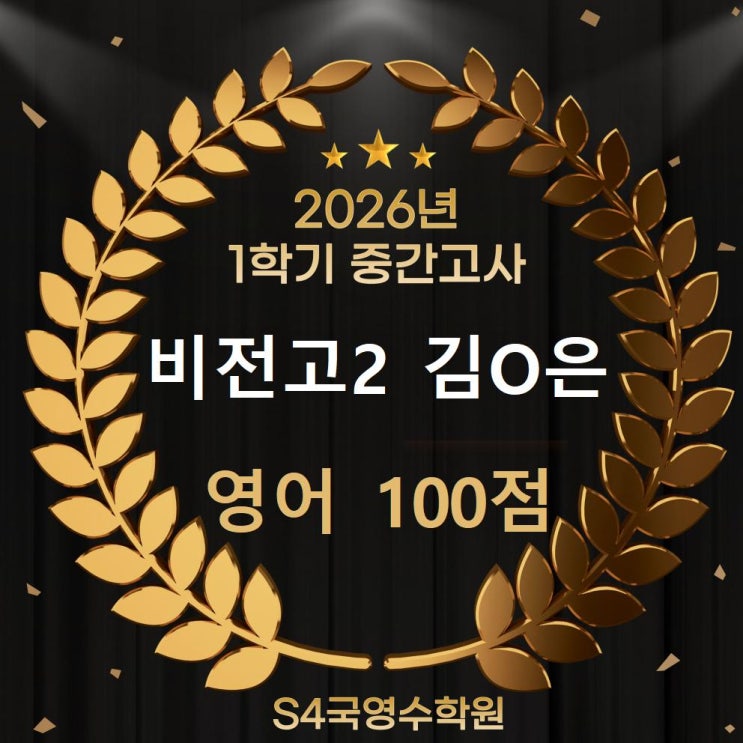 평택학원 S4국영수학원 성적우수자 [2026학년도 1학기 중간고사]