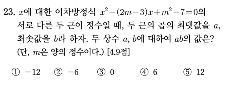 1. 단원별 문항 분포 및 배점 상세 이번 시험은 선택형 25문항으로만 구성되었으며, 총 5개 면에 걸쳐 출제되었습니다. 단원별 비중은 다음과 같습니다. 2. 난이도별 주요 특징 분석 [상] 변별력 문항 (22번 ~ 25번) 특징: 단순 계산을 넘어 문제의 조건을 논리적으로 결합해야 풀 수 있는 문항들입니다. 23번 (4.9점): 이차방정식의 근이 정수라는 조건을 활용하여 부정방정식의 형태를 해석하고 최댓값과 최솟값을 찾아야 하는 사고력 문제였습니다. 25번 (5.0점): 두 이차방정식의 판별식 조건을 동시에 만족하는 정수 순서쌍을 찾는 문항으로, 정해진 시간 내에 정확히 케이스를 분류하는 능력이 등급을 결정지었을 것입니다. [중] 응용 문항....... <img src="https://blogthumb.pstatic.net/MjAyNjA0MjlfMTU5/MDAxNzc3NDQ0NTE5NDgw.uEPbT_uaybQez4W8BMZO63eTu1gPGjnzPazgTmfv0E4g.NRegRlC0Jg1N6B9Er6gNNydTG0KvN1_6r4O-oBu09Z4g.PNG/image.png?type=s3" />