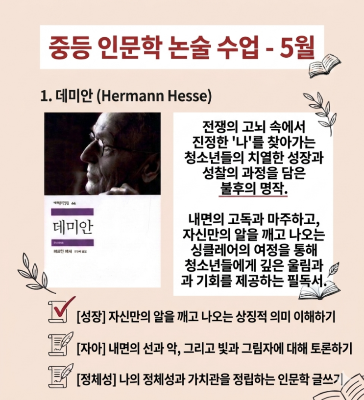 중등부 필독! '데미안'으로 준비하는 자소서와 수행평가 특강