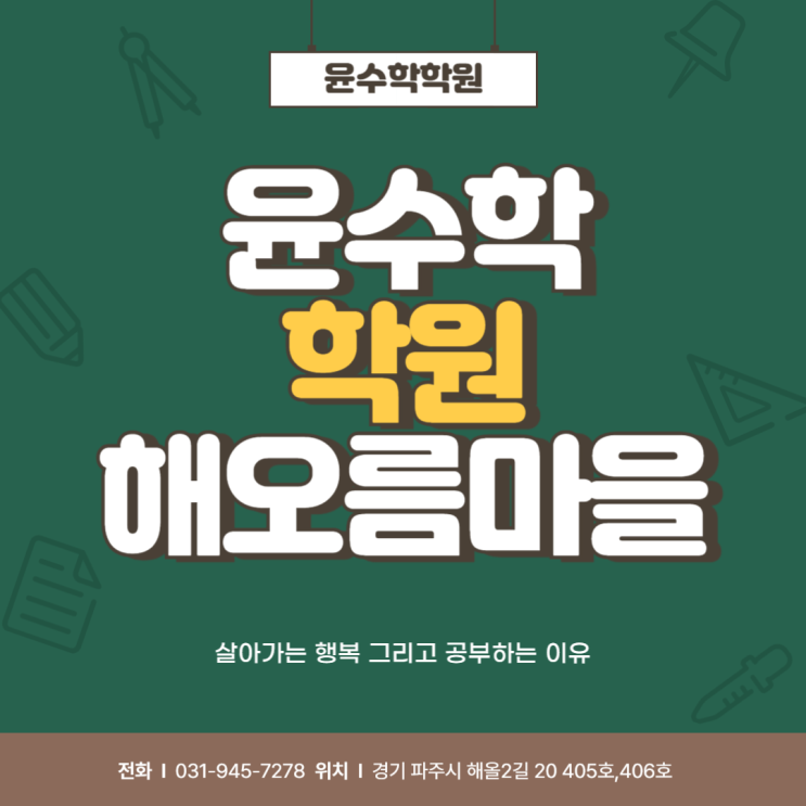 안녕하세요 경기 파주시 해오름마을에 위치한 윤수학학원 해오름마을입니다 요즘 학부모님들과 상담을 하다 보면 아이들에게 “왜 공부해야 할까”라는 질문을 자주 듣습니다 단순히 성적을 위해서일까요 좋은 대학을 가기 위해서일까요 물론 그것도 중요한 이유일 수 있습니다 하지만 저희는 그보다 더 중요한 이유를 함께 이야기합니다 공부는 단순히 문제를 푸는 과정이 아닙니다 스스로 생각하는 힘을 기르고 어떤 상황에서도 해결하려는 태도를 만드는 과정입니다 특히 수학은 그 힘을 가장 잘 길러주는 과목입니다 정답을 맞히는 것이 아니라 왜 그렇게 되는지를 이해하고 스스로 풀어내는 경험이 쌓이면서 아이들은 점점 자신감을 갖....... <img src="https://blogthumb.pstatic.net/MjAyNjA0MjFfMTkx/MDAxNzc2NzM4MjQ1MzU1.6CRDk-Jp-X_9M4cYT62gWfqJNEc1IeEqsOmlBesqtiIg.O5BW608vNy37R0WP1NomkXn1IDknaDGrKNupzOHPrTog.PNG/%BC%D2%BF%B5_%C5%DB%C7%C3%B8%B4_4-093.png?type=s3" />
