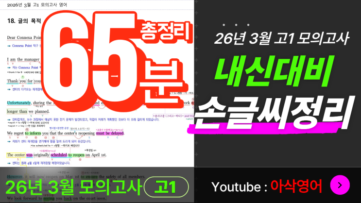 2026년 3월 고1 모의고사 41~42번(아삭영어 유튜브 구독자 요청자료 무료!) 영어 손글씨정리파일[내신1등급 필수템]-아삭영어