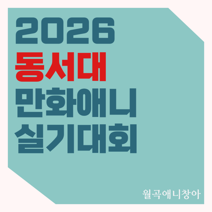 안녕하세요, 월곡애니창아입니다 :) 오늘은 2026 동서대학교 실기대회 일정을 정리해서 안내드릴게요. 만화·애니메이션 입시를 준비하고 있다면 실전 경험을 쌓을 수 있는 좋은 기회이니 꼭 확인해보시길 바랍니다. 참가자격 전국 중·고등학교 재학생 및 고등학교 졸업생 검정고시생 포함, 대학 재학생 제외 ※ 중등부는 선착순 100명 마감 (결제 완료자 기준) 참가방법 2026년 4월 10일(금) ~ 5월 6일(수) 엠굿 미대입시 홈페이지에서 온라인 접수 참가비 중등부 20,000원 / 고등부 45,000원 대회일시 2026년 5월 30일(토) 13:00 (12:00부터 고사실 입실 가능) 동서대학교 주례캠퍼스 참가부문 중등부 캐릭터디자인 · 정물....... <img src="https://blogthumb.pstatic.net/MjAyNjA0MjVfMTE0/MDAxNzc3MDg2OTYyNjMz.VDwzAP5jZbJapfgkaw-WGERsz-ZT-xccbRGEHVbX7Xgg.KTTZ1am6DqZDwIieOwcaoCPRDmg1M_xUekIrk693ltAg.PNG/1.png?type=s3" />