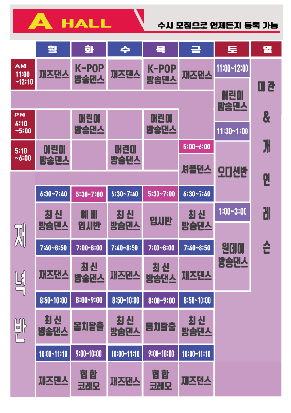 도봉구 창동댄스학원 포인댄스 시간표 확인하기
