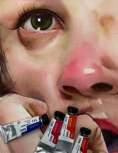 알파 AWC 수채화 물감 사용 후기 새 물감은 언제나 마음이 설렌다. 물감을 팔레트에 짤 때도 기분이 힐링이 되었다. 주로 내가 잘 사용하는 색 위주로 팔레트에 담았고 32색에 없는 색들도 기회가 되면 써 보고 싶다. 인물화에 붉은 계통의 색들을 주로 담았다. 이 그림으로 본 알파 AWC 물감의 느낌 ✔️ 1. 부드럽게 퍼지는 색감 (소프트한 번짐) 코 주변, 볼, 눈 밑 피부를 보면 경계가 딱 끊기지 않고 자연스럽게 이어지죠. 물감이 물과 잘 섞이면서 부드럽게 스며드는 타입 그래서 피부 표현처럼 “경계 없는 그러데이션"이 잘 되네요. ✔️ 2. 과하지 않은 자연스러운 발색 코의 붉은 부분을 보면 색이 분명히 올라와 있는....... <img src="https://blogthumb.pstatic.net/MjAyNjA0MThfMTg3/MDAxNzc2NDg2MzY2OTc0.TipTQ3hhNfRvRQxpM3-1ByXpdJrSnQP3AkLx9HOEv9Qg.dEneJ5skL6UUSOfxZ6MXAIFxLy3bPAE6bzehZr221sIg.JPEG/IMG_3196.jpg?type=s3" />