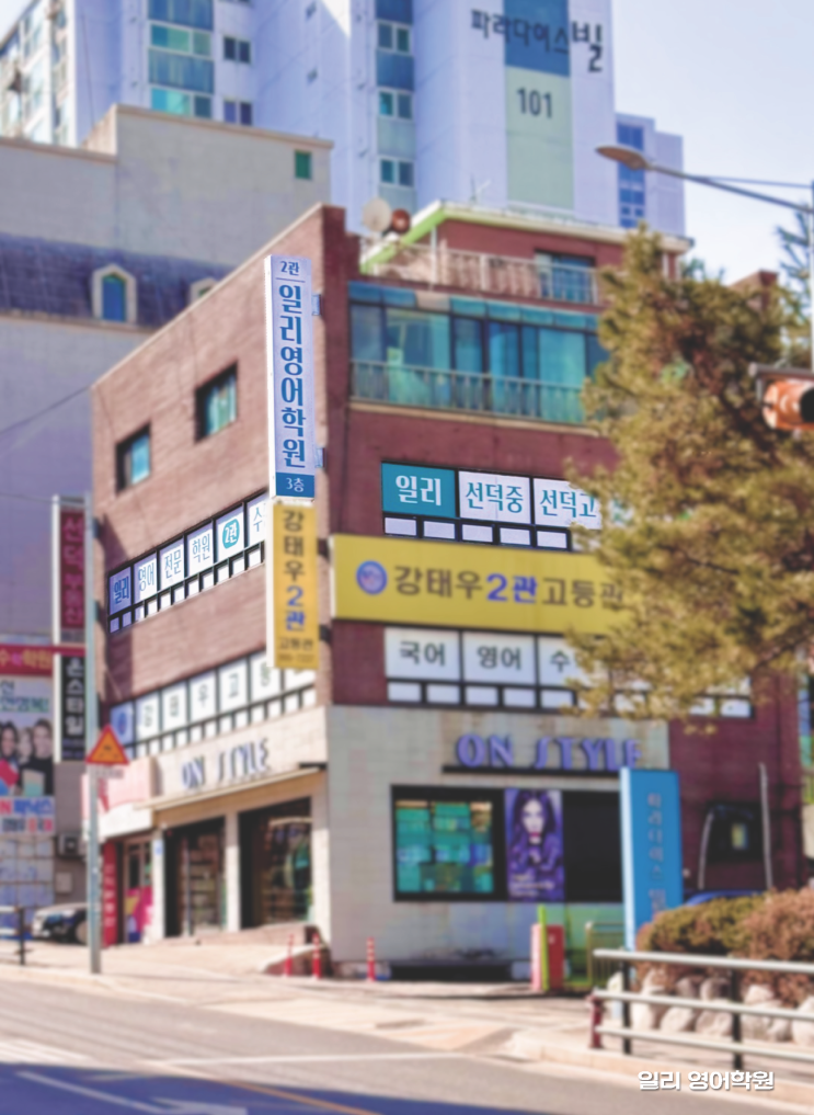 안녕하세요:) 일리 영어학원입니다. 꽃이 피었다 지고, 슬슬 여름의 향기가 피어 올라 기분이 좋아지는 4월입니다 그간의 학부모님과 학생분들의 응원에 힘입어 3월 새학기 시작과 함께 '일리 영어 2관'이 무사히 오픈하게 되었습니다! (짝짝짝) 일리 영어학원 2관은 선덕중,고등학교 정문에서 왼쪽으로 2-3분 정도 걸어 내려오면 보이는 온스타일 건물에 위치하고 있습니다 :) 건물의 왼편에 입구가 위치해있으니, 당황하지 마시고 건물 왼편으로 와주세요! 입구로 들어와 열심히 3층으로 올라와주시다보면~♀️♂️ 일리 영어 2관 게시판이 보입니다! 조금만 더 힘을 내주세요! 3층에 도착했습니다❤️ 일리영어....... <img src="https://blogthumb.pstatic.net/MjAyNjAzMTdfMTIw/MDAxNzczNzMwNjcyMjQw.YdyyhtTyIi3YjjM0LvchHEX8pig1fDD7eVbS7ZGflmog.dLbLx9CdhUsLQcWJUO6JlwUFdmy5oHb5Q3HyzuJF0zgg.PNG/%C0%CF%B8%AE%BF%B5%BE%EE%C7%D0%BF%F8_2%B0%FC_%B0%A8%BC%BA%BC%A6.png?type=s3" />
