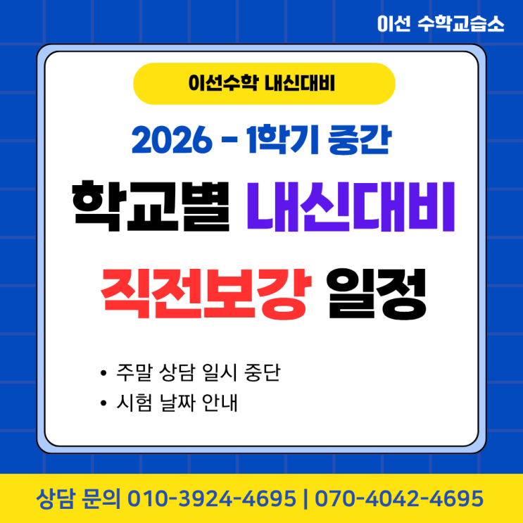 [이선수학 내신대비] 학교별 내신대비 직전보강 일정 안내