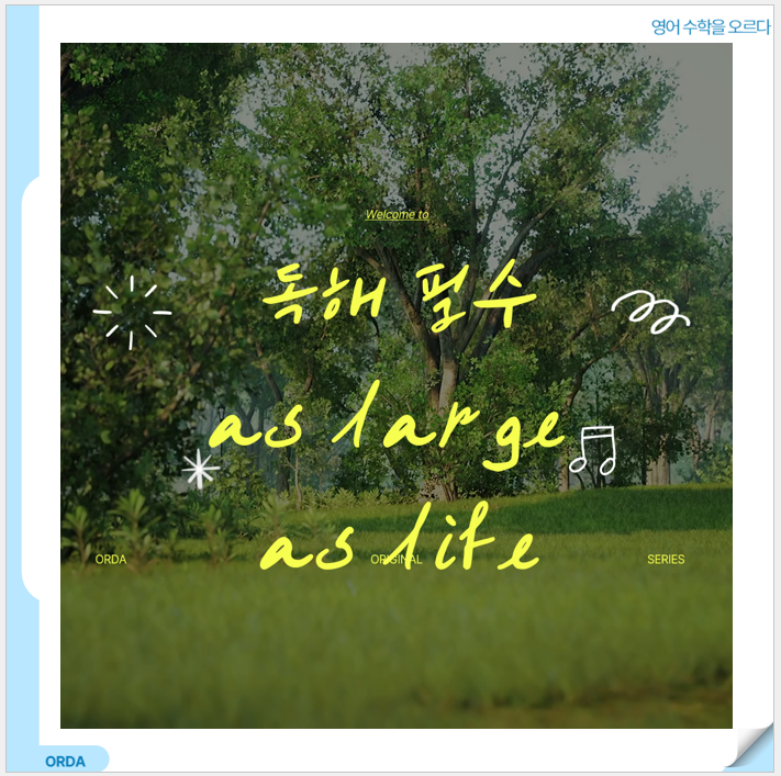 안녕하세요 오르다입니다. 이번 시간에는 독해 필수 as large as life에 대해 알아보겠습니다. 기본 의미 "(놀랍게도) 바로 그 사람이 눈앞에 있는" " 본인이 떡하니 나타난" " 살아 있는 그대로, 바로 거기 있는" 포인트 1. surprise가 핵심이다 이 표현은 “누가 어디에 있었다”를 말하는 표현이 아닙니다. 핵심은 예상하지 못한 만남의 놀라움입니다. Cambridge와 Merriam-Webster 모두 이 표현을 설명할 때 surprise를 핵심으로 두고 있습니다. 예를 들어, I never expected to see her there, but there she was as large as life. → 나는 거기서 그녀를 볼 줄 전혀 몰랐는데, 놀랍게도 그녀가 바로 거기 있....... <img src="https://blogthumb.pstatic.net/MjAyNjA0MjFfOSAg/MDAxNzc2NzgwMjE2MjQz.S4xaQTGHYrlt1pxUO7itOqfkNQgc3O-69WjlCzAFOfQg.kIBcp3TG4EloBPYpl85vreyKPdq7FX6QjrUkAlBY9QIg.PNG/%C7%A5%C1%F6.png?type=s3" />