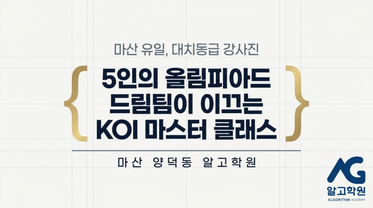 마산 가고파초 코딩 : AI 시대의 필살기, 정보올림피아드! 알고학원 5인의 전문가와 준비하세요.