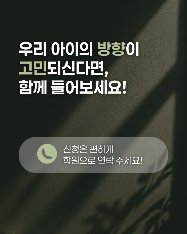 안녕하세요! 이번 학력평가를 치르며 우리 아이들이 한 뼘 더 성장하는 시간을 가졌습니다. 학력평가는 단순히 진도를 확인하는 시험이 아닙니다. 진도보다 중요한 건, 아이가 문제를 마주하는 마음가짐입니다. 아이가 수학을 대하는 태도와 사고방식을 확인하고 점검하는것입니다. 저희는 이번 평가를 통해 아이가 다음 세 가지를 실천하고 있는지 면밀히 확인합니다. 관찰: 문제를 보자마자 계산부터 하는가, 조건을 읽고 충분히 고민하는가? 논리: 풀이 과정을 설명할 때 단계별 논리가 정연한가? 태도: 틀린 문제를 완벽하게 이해하고 유사 문제까지 스스로 해결해내는가? 이 분석 과정은 학부모님과 투명하게 공유되며 이를 바탕으로 아이에....... <img src="https://blogthumb.pstatic.net/MjAyNjA0MTNfMTQ4/MDAxNzc2MDYxNDgxMjgw.T7m8v-MLkVf1okdGAPYEF4ZnBZjYC7GBN7JW8oJ9WPMg.G_g76RMvA197GdMvSGSkpuaqXqo2eEqXyjn3XdvJqygg.JPEG/KakaoTalk_20260408_181228120.jpg?type=s3" />