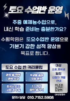 거제 수월 평일엔 예체능, 토요일엔 내신! 우리 아이 학습 결손, ‘토요 특별반’으로 해결하세요.