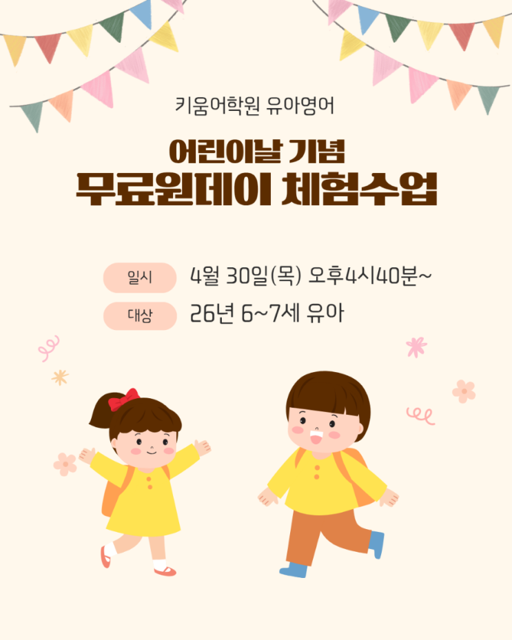 <<금정구 유아영어>> 26년 어린이날기념 원데이클래스 안내*키움어학원금정본원 *장전동유아영어 *구서동유아영어 *부곡동유아영어