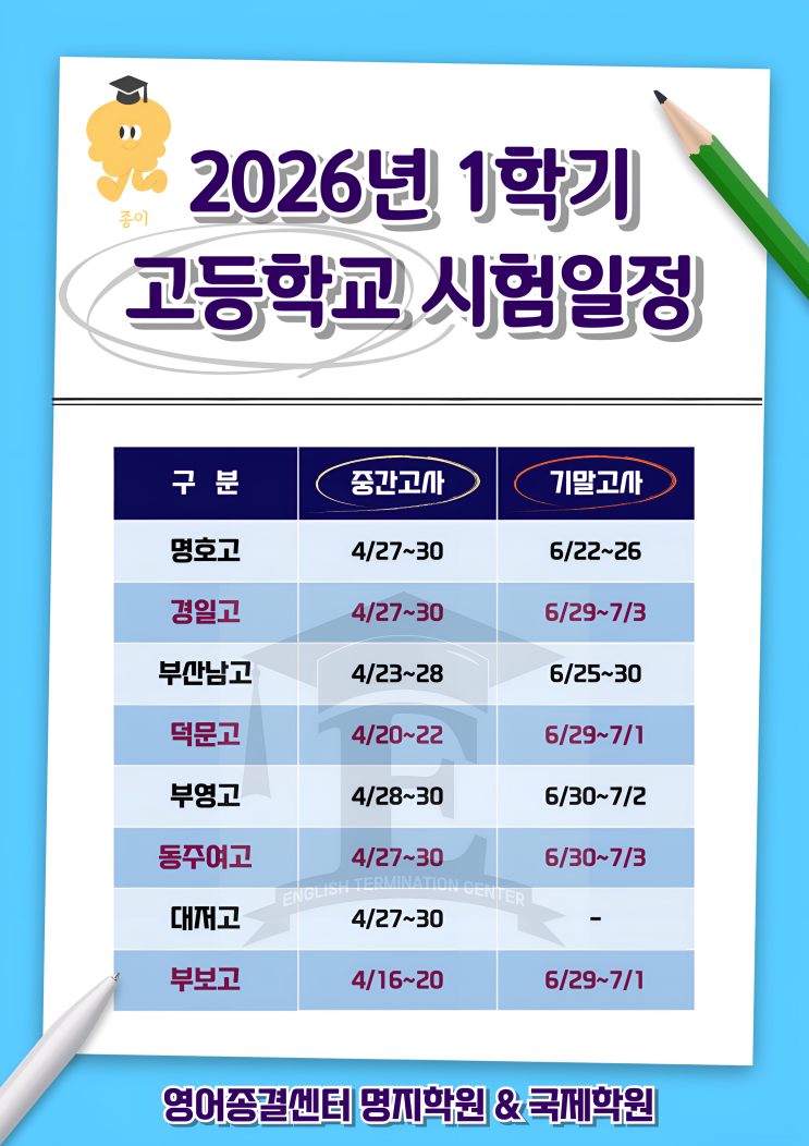 올해의 첫 시험이네요. 준비한 만큼의 결과가 분명 따라옵니다. 얘들아 힘내자구!! #명호고내신 #경일고내신 #부산남고내신 #대저고내신#덕문고내신 #명지영어학원 #명지입시영어학원 #명지수능영어#명호중내신#오션중내신#명지중내신#경일중내신 <img src="https://blogthumb.pstatic.net/MjAyNjA0MTZfMjU1/MDAxNzc2MzIyNTI0ODcy.BBW2eQFvU7mGuiUCYNgME8ilA6DmR5_OXrpxkgOtF0Eg.Tupcqi-1b2WsgURnIDvhwWYcNIBHJC-wfN23PgT9Qtog.PNG/KakaoTalk_20260402_183459377.png?type=s3" />