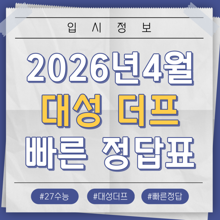 오늘은 4월 대성더프 시험일입니다. 이번 달 더프 난이도는 어떠셨나요? 가채점해 보실 수 있도록 빠른 정답표 공유합니다! 다들 노력한 만큼의 결과가 있기를 진심으로 응원합니다. 국어영역 공통과목 화법과 작문 언어와 매체 수학영역 공통 과목 확률과 통계 미적분 기하 영어영역 한국사 영역 <img src="https://blogthumb.pstatic.net/MjAyNjA0MTdfMjM3/MDAxNzc2NDA3Nzg1ODQ5.m-9ZyP6KSOTQYXsT7sqv-_saEtceoiEPqJ2pcnnFgqEg.lr1vKq2RFpCfnB8-ghjwXfMhZJY6D7RCoDeJ7m1NbjYg.PNG/%BF%F8%BE%D8%BF%F8_%C0%D4%BD%C3%C1%A4%BA%B8-001.png?type=s3" />