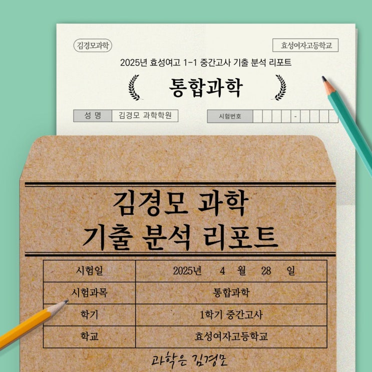 안녕하세요 김경모 과학학원입니다:) 오늘은 AI 와 김경모 원장님의 연구를 통해서 만들어진 기출 분석 리포트를 소개 드릴까 합니다!! 중간고사 시험이 곧 다가오고 있습니다! 지금 저희 학원 선생님들은 물론 학생들까지 각자의 자리에서 최선을 다하며 준비하고 있습니다.:D 김경모 원장님께서는 학생들에게 조금이라도 더 유익한 정보를 제공하고자, AI와 함께 연구를 진행하며 여러 번의 시행착오 끝에 기출 분석 리포트를 완성하였습니다. 2025년 1학년 1학기 중간고사 효성여자고등학교 통합과학 기출 분석지로 안내 드리겠습니다! 보시는 바와 같이, 기출 총평과 함께 전체 난이도, 킬러 문항, 출제 범위까지 빠짐없이 확인하실 수 있습....... <img src="https://blogthumb.pstatic.net/MjAyNjA0MTZfMTA3/MDAxNzc2MzI3OTk4NTAz._IVVYs2yK6bTrXWUu_55qepBtKv1QNxjL5vBI0xoSLog.dTy2f3-XrWQ_igC5bEDN7DNW-z9UvoXYY8ug1iyKy00g.JPEG/%C7%A5%C1%F6.jpg?type=s3" />