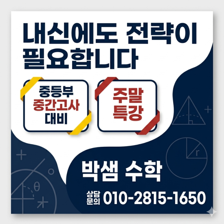 중등부 중간고사 내신 대비, 주말 특강. 월성동 수학학원. 조암중, 월서중, 월암중, 학산중, 영남중, 효성중,대건중