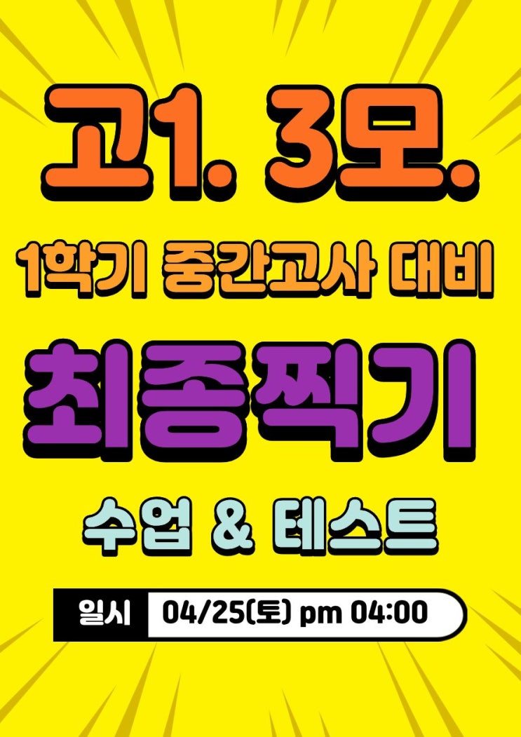안녕하세요 대구 달서구에서 성적을 바꾸는 영어학원, 퍼펙트영어학원입니다. 중간고사 전, 지금이 점수를 올릴 수 있는 마지막 타이밍입니다. 그래서 준비한 핵심 프로그램 중간고사 직전 필수 특강 ✔ 26년 03월 모고 최종찍기 수업 & 실전 테스트 ✔ 시험 직전 반드시 나오는 핵심 정리 ✔단기간 점수 상승에 최적화된 수업입니다. 수업 일정 ✅️ 고1. 1차 최종찍기 4월 25일 (토) 오후 04:00 선착순 30명 마감 신청방법: 단톡방에 고1 4시 신청 ✅️ 고1. 2차 최종찍기 4월 25일 (토) 오후 07:00 선착순 30명 마감 신청방법: 단톡방에 고1 7시 신청 ✅️ 고2.1차 최종찍기 4월 25일 (토) 오후....... <img src="https://blogthumb.pstatic.net/MjAyNjA0MjBfNzQg/MDAxNzc2Njg2Njk1MTA1.WnpjRwwcKw8WuDTws3va25yfL3ZB4VYPZ62kPaI6d4Qg.HeWrwZYxAcLdaMheljz1fvikDBcTp5u-Tu-KvNFgOksg.JPEG/1776686680696.jpg?type=s3" />