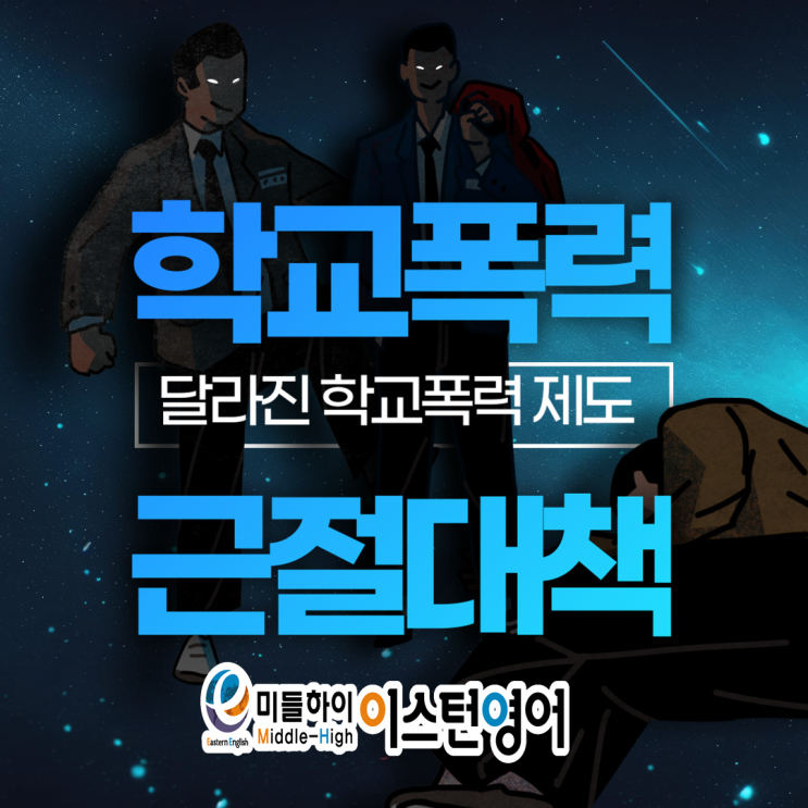 안녕하세요 20년 전통의 만수동영어학원, 만수3지구 영어학원 미들하이 이스턴영어학원입니다. 학교폭력에 대해 많이 질문하시곤 합니다. 이번에 카드뉴스로 안내드리오니 참고바랍니다. 이젠 학교폭력에 연루되어 생기부에 특정호이상 기재되면 대학입시에 치명타입니다. 남을 배려하는 학생들 남과 나는 다르다는 생각으로 존중하는 학교생활을 하기를 바랍니다. 대학에서 학폭 반영학교 영작으로 구문력! 다량반복 어휘력! 해브듣기로 청취력 ! "내신"과 "입시영어" '확실한점수'와 '등급을 추구 만수동영어, 만수3지구영어, 만수6동영어의 강자 20년 전통의 초중고영어전문학원 미들하이 이스턴영어학원....... <img src="https://blogthumb.pstatic.net/MjAyNjA0MjBfMTg2/MDAxNzc2NjgyNjQwMTE3.73y50dYq_urzUvpuzZC-CuX_OjKwTE6yUolL1wgz1uQg.A83RDtPE1vV4fqGKxlibI8OxuZIGXQ6hX0rgLLjbciMg.PNG/%BD%BD%B6%F3%C0%CC%B5%E51.PNG?type=s3" />