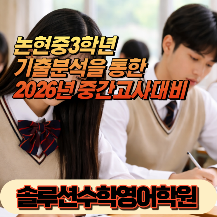 안녕하세요 인천 논현동 영어수학 전문학원 논현솔루션입니다. 3월 신학기의 설렘이 채 가시기도 전, 우리 학생들과 학부모님들의 마음 한편에는 벌써부터 '첫 중간고사'라는 묵직한 부담감이 자리 잡고 있을 것입니다. 특히 중학교 3학년 1학기 수학은 단순한 내신 성적 이상의 의미를 지닙니다. 이 시기의 성적은 고등학교 진학 후의 '수학 성적'을 결정짓는 결정적 지표가 되기 때문입니다. 또한, 중학교 3학년 1학기는 수학적 사고의 대전환이 일어나는 시기입니다. 유리수의 범위를 넘어 '무리스'의 개념을 확장하고, 고등 수학의 핵심 줄기인 '이차함수'를 처음 마주하며 학생들은 생소한 개념 앞....... <img src="https://blogthumb.pstatic.net/MjAyNjA0MTRfNTIg/MDAxNzc2MTM0MzQzNjMw.yJr1-FfEBvbz-hIZN_zVUQefj2dy5vvTK3hSjhq7Iisg.EKlMNG7W9D6CkRzel4dSNbk1FbXSfYdCcjCGbkhIRo0g.PNG/sdf.png?type=s3" />