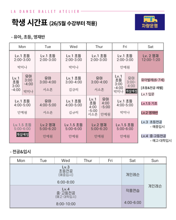 라당스 발레 아뜰리에 시간표(26/5 업데이트)