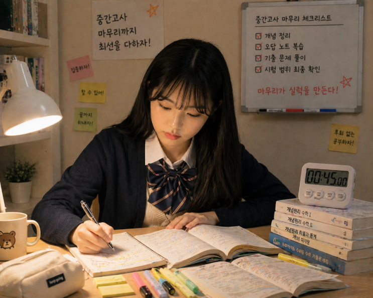 중간고사가 코앞으로 다가왔습니다. 요즘 학부모님들 상담을 하다 보면 가장 많이 하시는 말씀이 있습니다. “아이가 공부를 아예 안 하는 건 아닌데… 점수가 안 나와요.” “이번 시험이 너무 걱정돼요.” 사실 이 시기의 불안은 너무 당연합니다. 그리고 대부분의 경우, 그 이유는 분명합니다. ■ “열심히는 하는데 성적이 안 나오는 이유” 많은 학생들이 지금 이런 상태입니다. • 문제는 많이 풀고 있음 • 학원도 다니고 있음 • 나름 공부 시간도 있음 그런데 결과는 기대보다 낮습니다. 왜일까요? 공부의 ‘양’이 아니라 ‘방향’이 틀렸기 때문입니다. ■ 시험 직전, 가장 중요한 건 ‘전략’입니다 중간고사 직전은 새로운 걸....... <img src="https://blogthumb.pstatic.net/MjAyNjA0MjVfMjM1/MDAxNzc3MDk4Nzk2NDM1.fK-0csITh2Oe8LpKpv_bOGUtJjGX-yVoyR3_f8UmM7Ag.22sIIivvaxTgzX6TlEC-vLjG6MF41DC_uop0kPBsoLUg.PNG/900_1777097820117.png?type=s3" />
