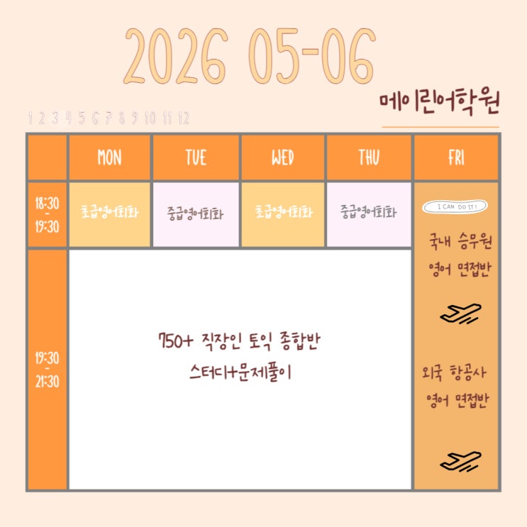[전주토익학원/전주승무원영어면접학원/전주영어회화학원]2026년 5월-6월 시간표