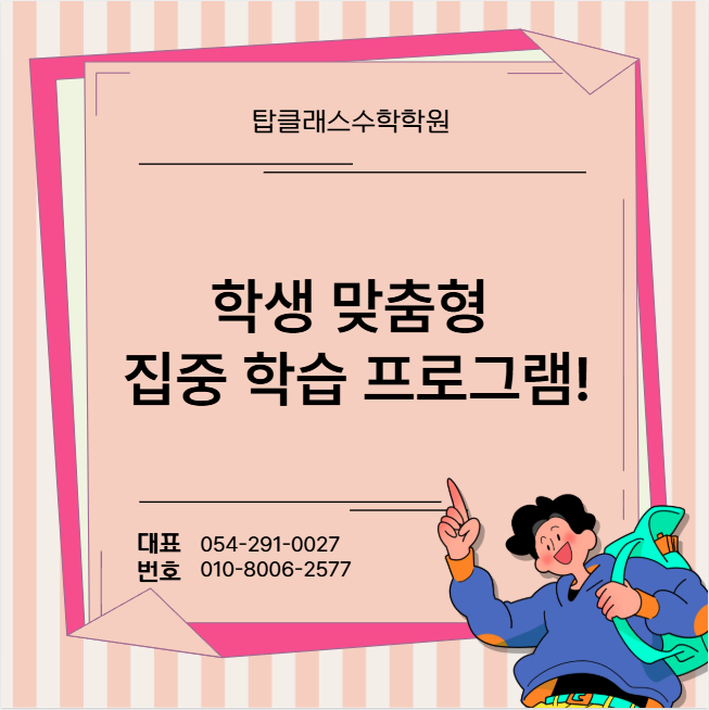 안녕하세요. 흥해공고수학 탑클래스수학학원입니다. 저희 학원은 학생 수준과 학습 목표를 세밀하게 분석하여 맞춤형 커리큘럼을 구성하고 있습니다. 단순 공식 암기가 아니라 개념 이해와 문제 해결 전략을 동시에 강화하도록 설계하며 학생이 스스로 사고하며 풀이 과정을 정리할 수 있도록 지도합니다. 기본 개념과 원리를 충분히 학습한 후 다양한 유형의 문제를 단계별로 풀면서 응용 능력과 사고력을 함께 향상시킵니다. 실전 문제 풀이를 병행하면 시험 대비와 자신감 향상에도 도움이 됩니다. 흥해공고수학 전문 저희 탑클래스수학학원은 이런 과정에서 학생별 이해도를 정기적으로 점검하며 학습 효율을 높입니다. 학습 계획은 월·수 기....... <img src="https://blogthumb.pstatic.net/MjAyNjA0MDlfMjY0/MDAxNzc1NzEzNDA2NjU4.-nEztr7fsikAzgG-_h-4bnOwyl_PaECktgTMCrcJML8g.f3BZwXPtOVFU76iwrt5SWpNAIVQ1mOdxq5dPKZ3f8jQg.PNG/image.png?type=s3" />