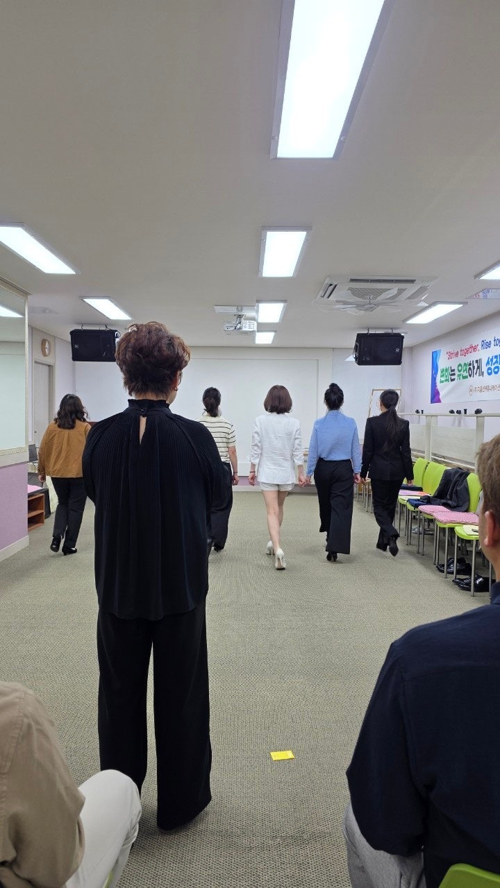 - 걷기만 배운 것이 아니라 자신감과 태도를 함께 익힌 시간 벚꽃이 지고 철쭉이 피기 시작한 4월 저녁, 지홍선커뮤니케이션즈 105기가 다시 모였습니다. 직장에 다녀온 뒤에도, 아이들 밥을 챙긴 뒤에도 배움을 위해 다시 자리에 나온 분들입니다. 이번 수업의 주제는 모델워킹이었습니다. 처음에는 워킹 수업이라고 하면 단순히 걷는 방법을 배우는 시간이라고 생각할 수도 있습니다. 하지만 이날 수업은 그보다 훨씬 깊었습니다. 자세를 바로 세우고, 시선을 정리하고, 공적인 자리에서 더 당당하게 보이는 태도를 훈련하는 시간이었습니다. 결국 이번 모델워킹 수업은 걷기 자체를 배우는 시간이 아니라, 리더의 인상과 존재감을 몸으로 훈련....... <img src="https://blogthumb.pstatic.net/MjAyNjA0MjFfMTI2/MDAxNzc2NzU3MDg2Nzg2.9lE6GeXaqMdyNKJq3FGBMbxoa53uiyH_cCkX3lhvLEsg.HMhLHErp7MHikkD40LG8wGYK-BKpqfT7HFtm2BUB168g.JPEG/KakaoTalk_20260421_163701020.jpg?type=s3" />