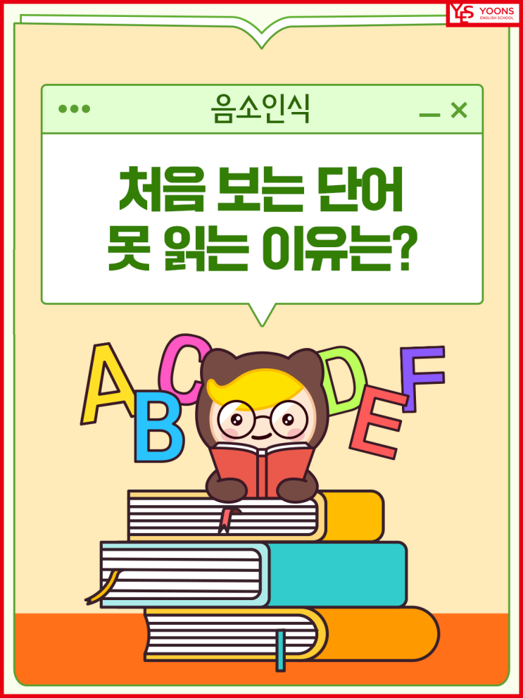 단어를 구성하는 가장 작은 소리 단위인 음소를 듣고 구별·조작하는 능력으로, 읽기와 철자 학습의 기초가 됩니다. 파닉스는 글자와 소리의 관계를 배우는 ‘글자 중심’ 학습이라면, 음소 인식은 ‘소리 중심’으로 글자 없이 소리만으로 연습하는 것이 핵심입니다. 처음 보는 단어는 왜 못 읽을까요? 바로 '음소인식' 부족 때문입니다. 음소 인식 핵심 정리 음소 인식 : 단어를 음소 단위로 나누고 합치거나 바꾸기 예시) cat → /k/ /æ/ /t/ 나누기, /k/를 /h/로 바꿔 hat 만들기 파닉스만으로는 소리 구분이 약하면, 규칙을 외워도 읽기·이해에 어려움이 생길 수 있습니다. 음소 인식이 탄탄하면 소리를 잘 구분해 새로운 단어를 소....... <img src="https://blogthumb.pstatic.net/MjAyNjA0MTVfMTYz/MDAxNzc2MjI5OTkyNjUz.jwT8eRa1EAke-ESL8SNZu0KVXlH2hTK8prmhqqPOC0Mg.BqEn-wblfVDJb9D18g6YVC_pb-sEEloyXf8CmwkyM1Ag.PNG/1p.png?type=s3" />