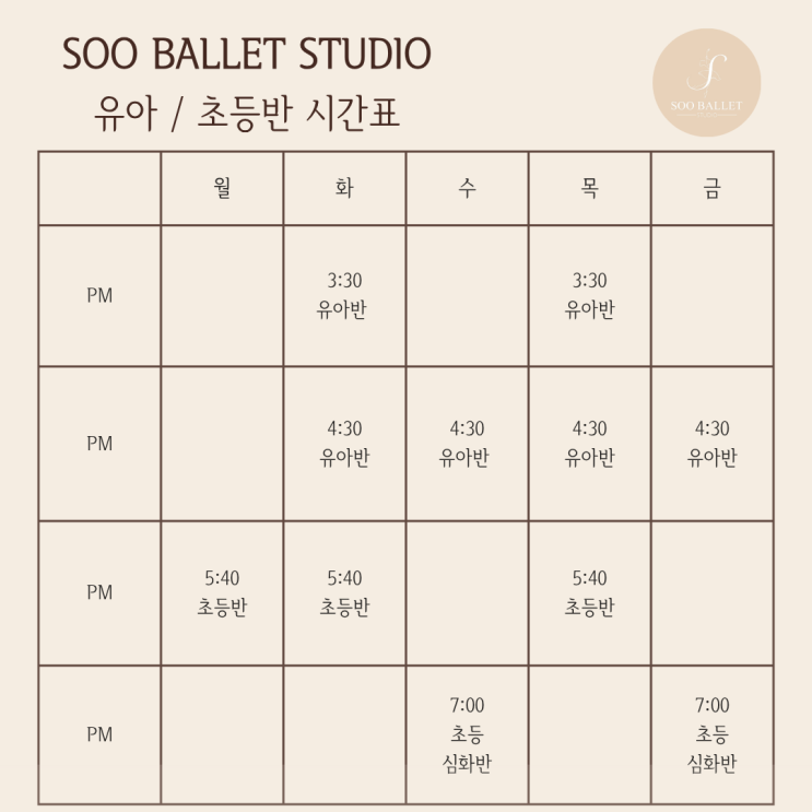 2026 유아 / 초등 발레 시간표