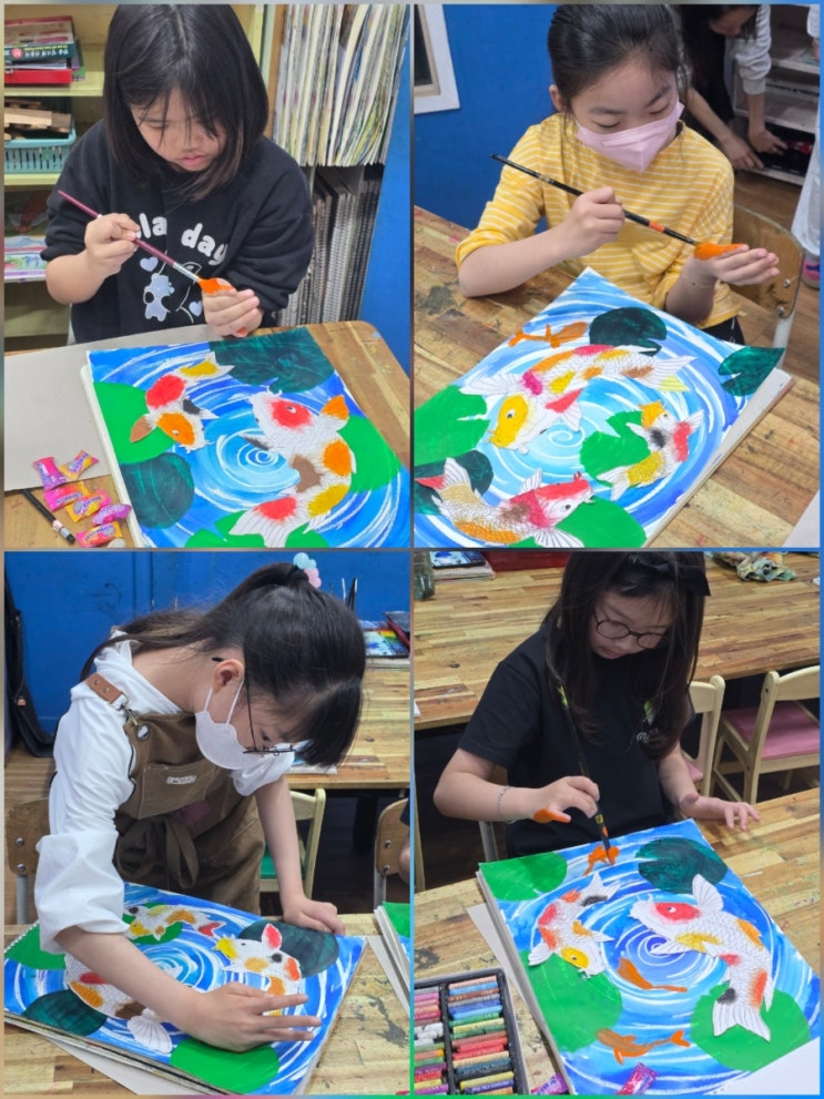 [화명동 미술학원] 큰빛미술학원 토요반 친구들의 멋진 잉어 그리기 작품! (창의력 쑥쑥)